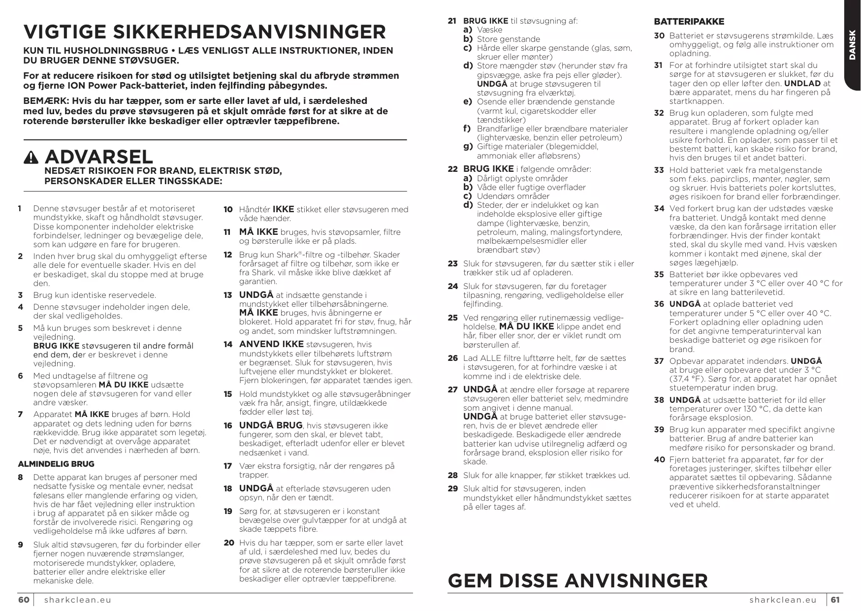 CONSERVEZ CES INSTRUCTIONS s h a r kc l e a n . e u