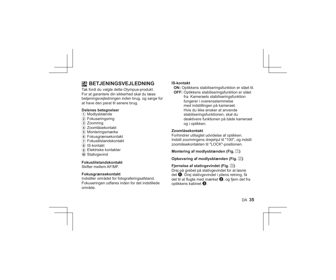 BRUGSANVISNING M.ZUIKO DIGITAL ED 100-400MM F5.0-6.3 IS OLYMPUS