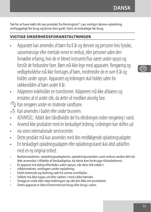 XR1500 - Barbermaskine REMINGTON - Notice d'utilisation et mode d'emploi gratuit
