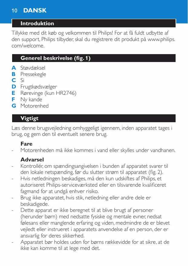BRUGSANVISNING HR2746 PHILIPS