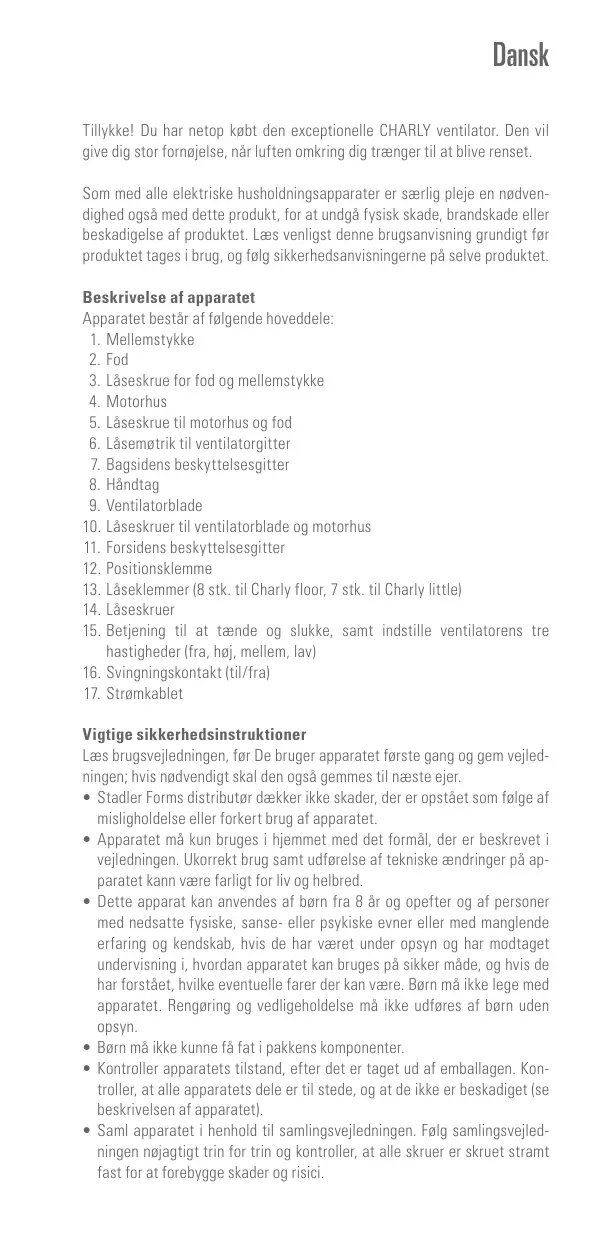 Charly - Ventilator STADLERFORM - Gratis brugsanvisning og manual