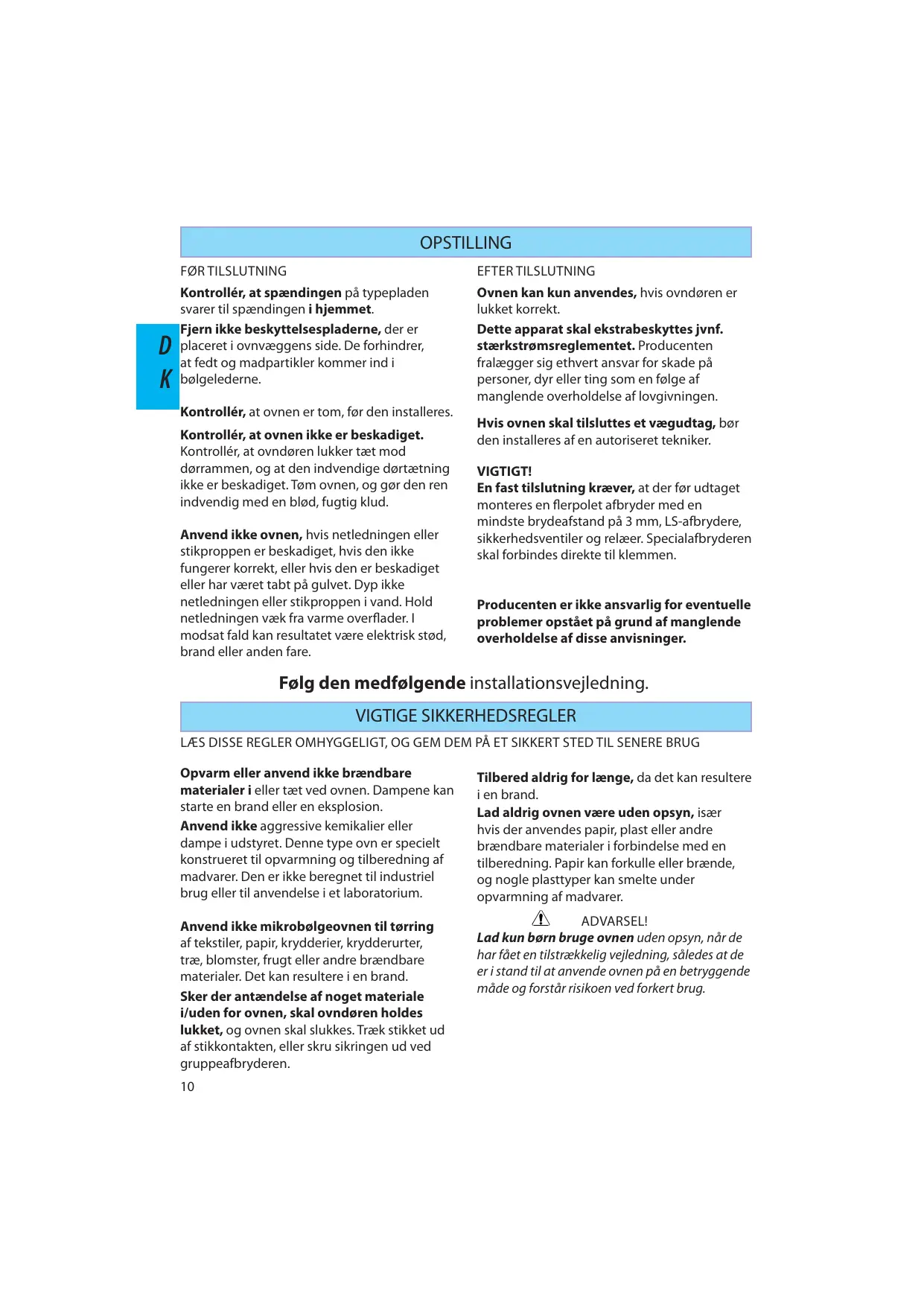 Lad kun børn bruge ovnen uden opsyn, nár de har fæt en tilstrækkelig vejledning, sáledes at de er i stand til at anvende ovnen på en betryggende mäde og forstår risikoen ved forkert brug.