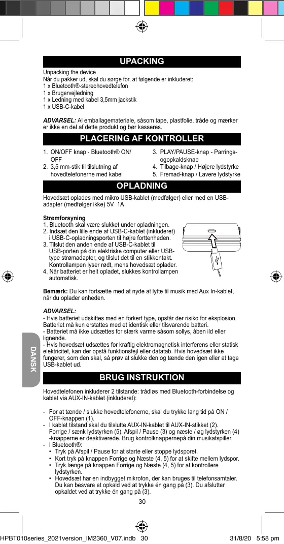 BRUGSANVISNING Casque sans fil Harry Potter LEXIBOOK
