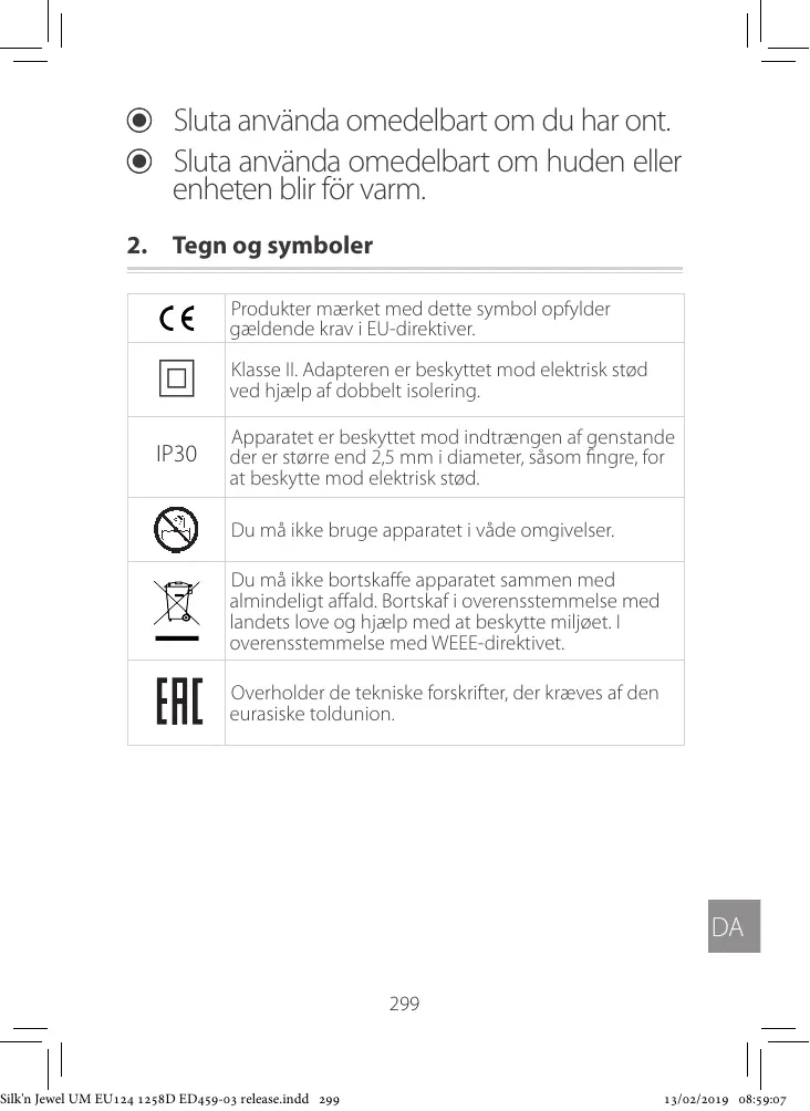Tegn og symboler . Sikkerhed ved brug af Silk'n Jewel . Lær din Silk'n Jewel at kende … Sikkerhedstips