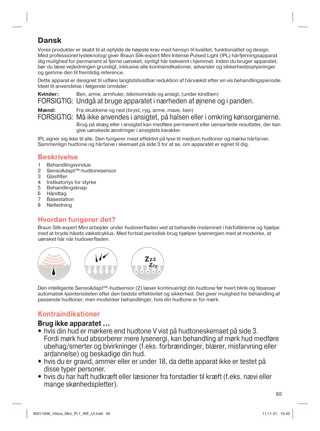 e Les mamelons, les parties génitales ou autour de l'anus. Au niveau de ces zones, la peau peut avoir une coloration plus foncée et/ou une densité pilaire plus importante. Utiliser l'appareil sur ces zones peut causer douleurs et sensations désagréables ou encore endommager votre peau.