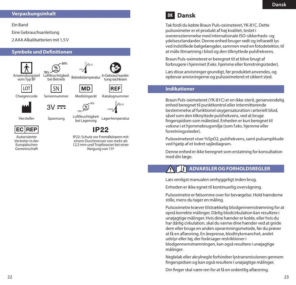 YK-81CEU - Oxymetre de pouls BRAUN - Notice d'utilisation et mode d'emploi gratuit