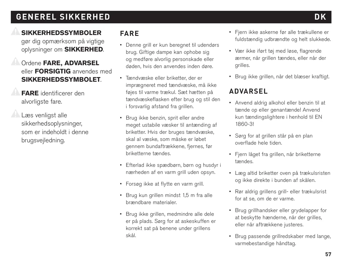 + Ne retirez pas les cendres tant que le charbon n'a pas entièrement brûlé et n'est pas complètement éteint.