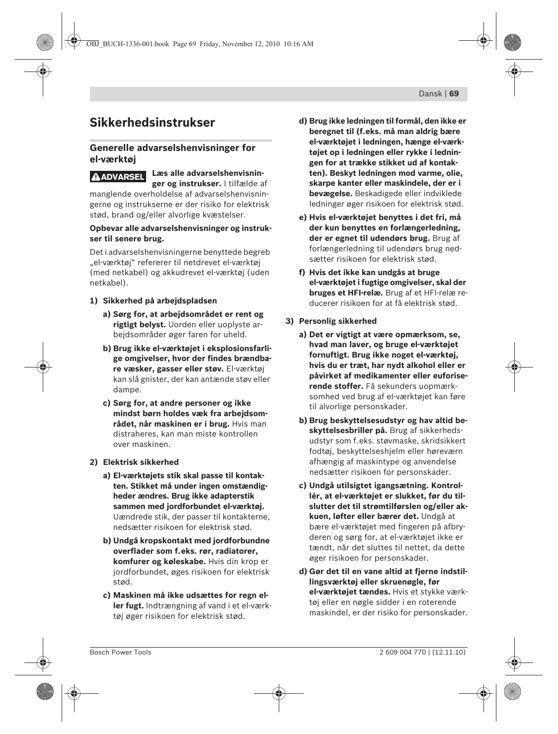 Generelle advarselshenvisninger for el-værktoj