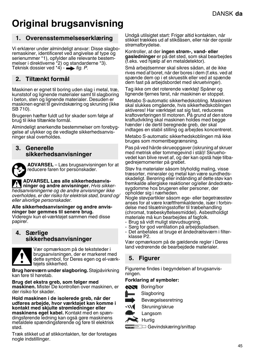 BRUGSANVISNING SB 710 SBE 701 SP SBE 710 SBE 730 SBE 751 SBE 850 SBE 900 Impuls SBE 1000 SBE 1100 Plus SBE 1300 METABO