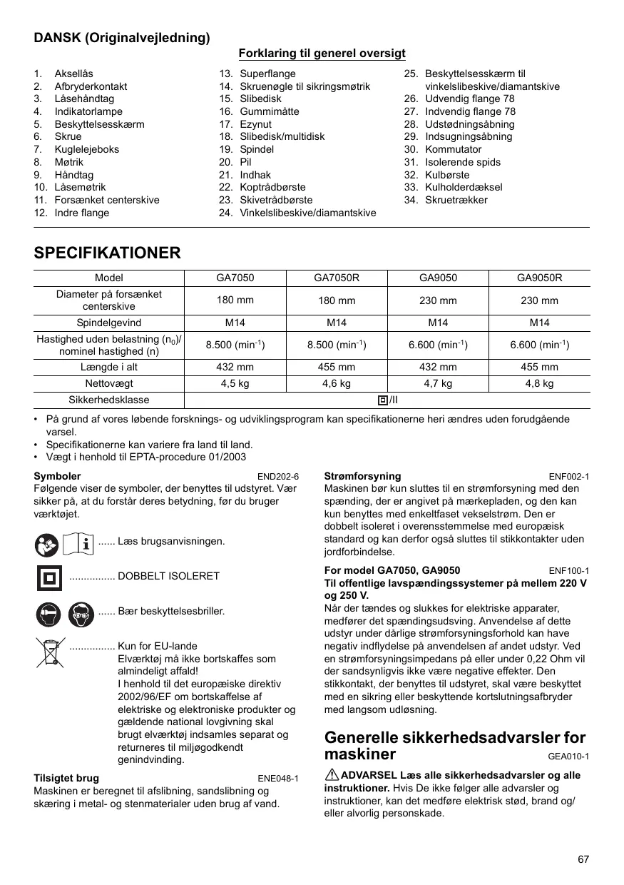 BRUGSANVISNING GA7050 GA7050R GA9050 GA9050R MAKITA