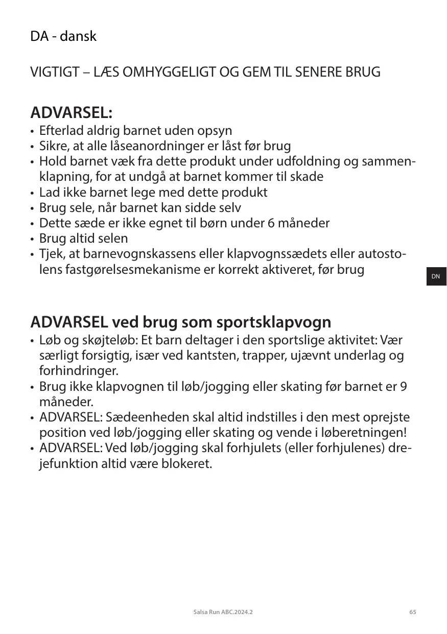 BRUGSANVISNING SALSA RUN ABC DESIGN