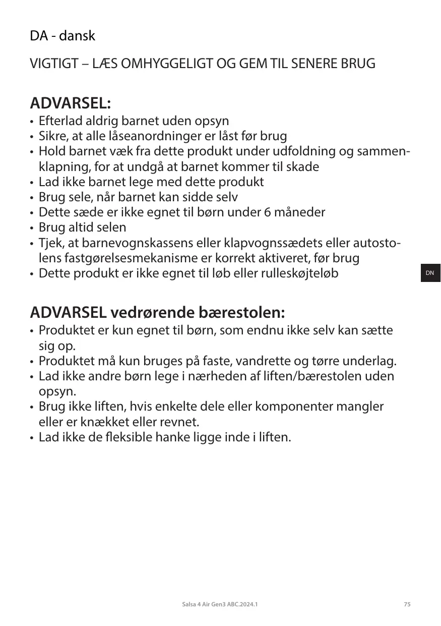 BRUGSANVISNING SALSA 4 AIR ABC DESIGN
