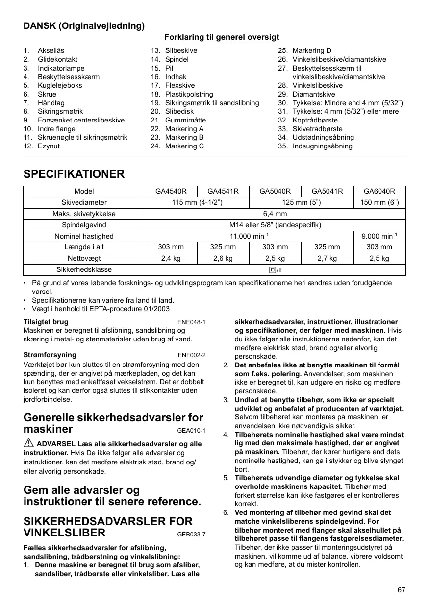 BRUGSANVISNING GA5040R MAKITA
