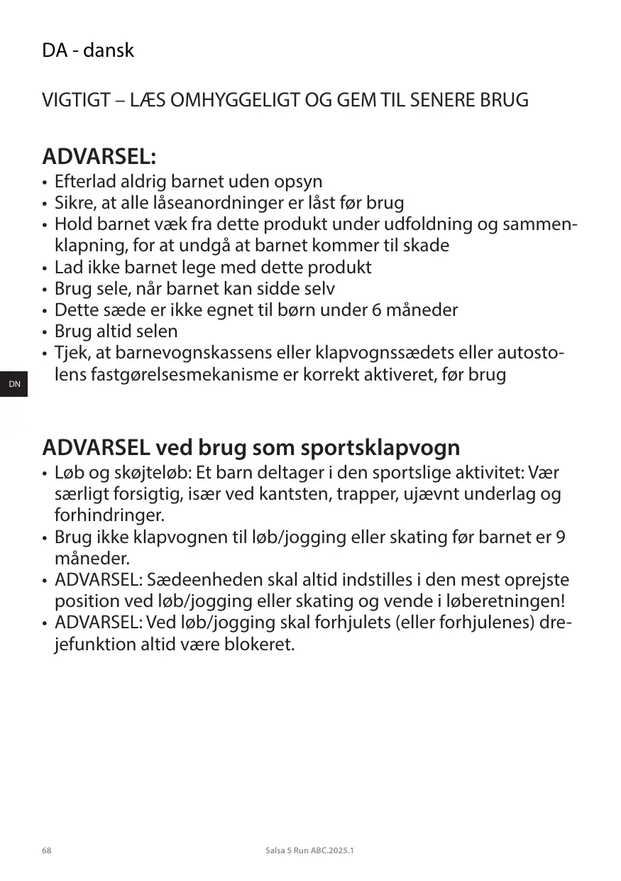 BRUGSANVISNING SALSA 5 RUN ABC DESIGN