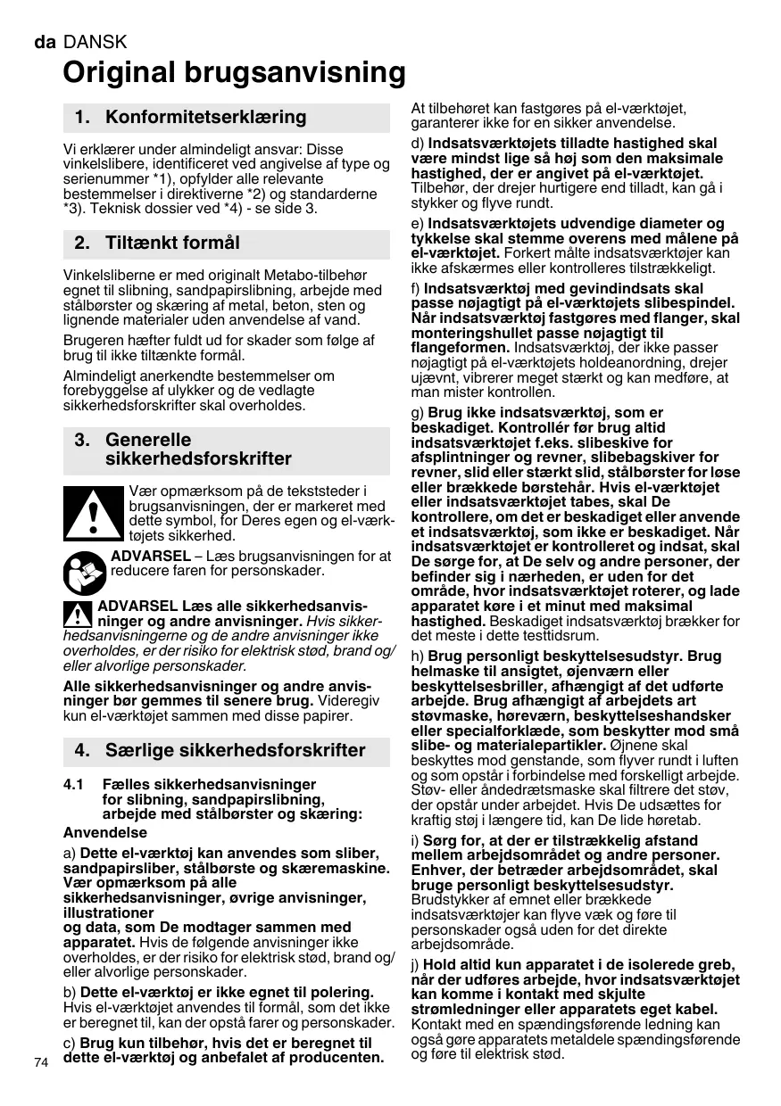 BRUGSANVISNING W 1100-115 W 1100-125 W 1150-125 WP 1200-115 RT WP 1200-125 RT WE 1500-125 RT WE 1500-150 RT WEV 1500-125 RT WEV 1500-125 Quick RT METABO