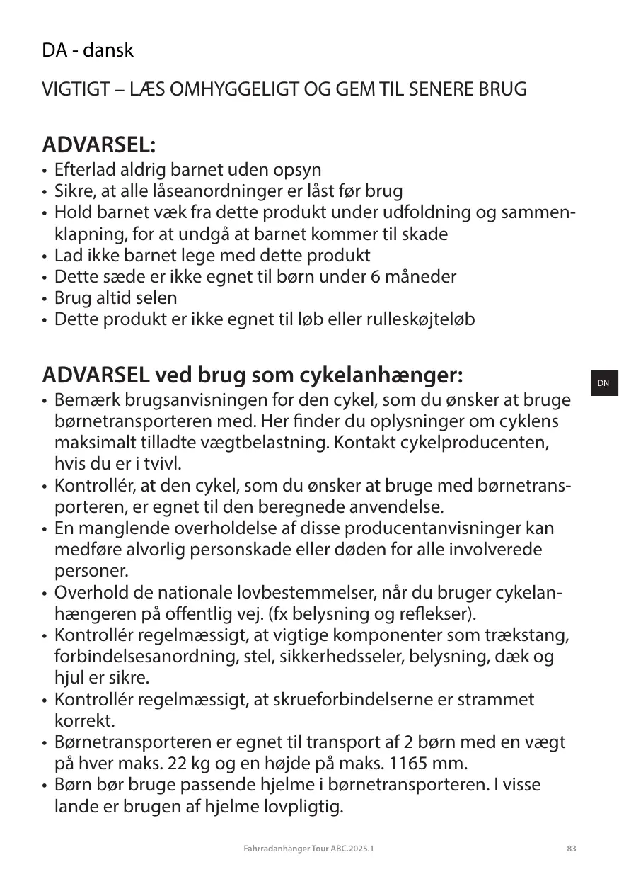 -+ Suivez les instructions d'utilisation du vélo avec lequel vous sou- haitez utiliser cette remorque pour enfants. Vous y trouverez des informations sur la charge maximale autorisée du vélo. En cas de doute, contactez le fabricant de votre vélo.