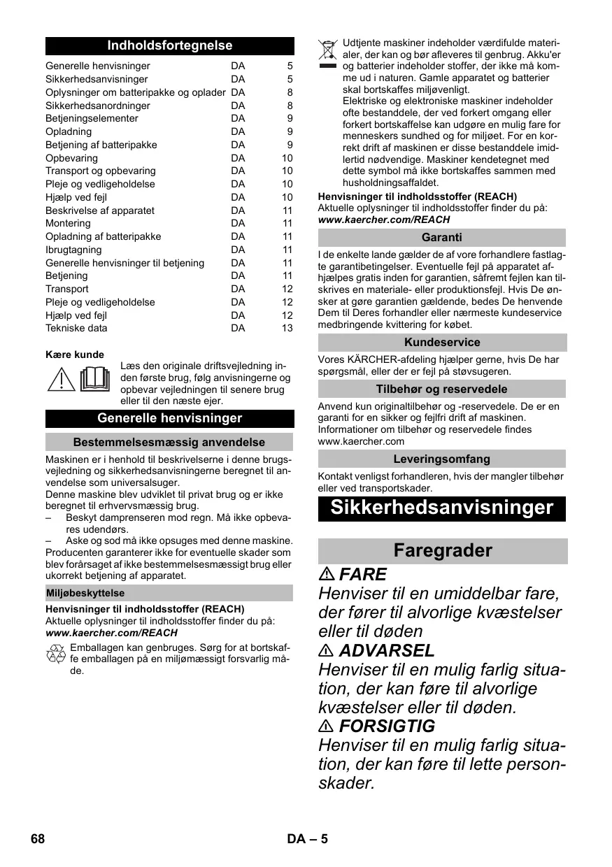 m Des informations sur le manuel d'utilisation pour les packs d'accumulateurs ainsi que les acces- soires et pièces de rechange sont disponibles sur le site Internet www kaercher.com.