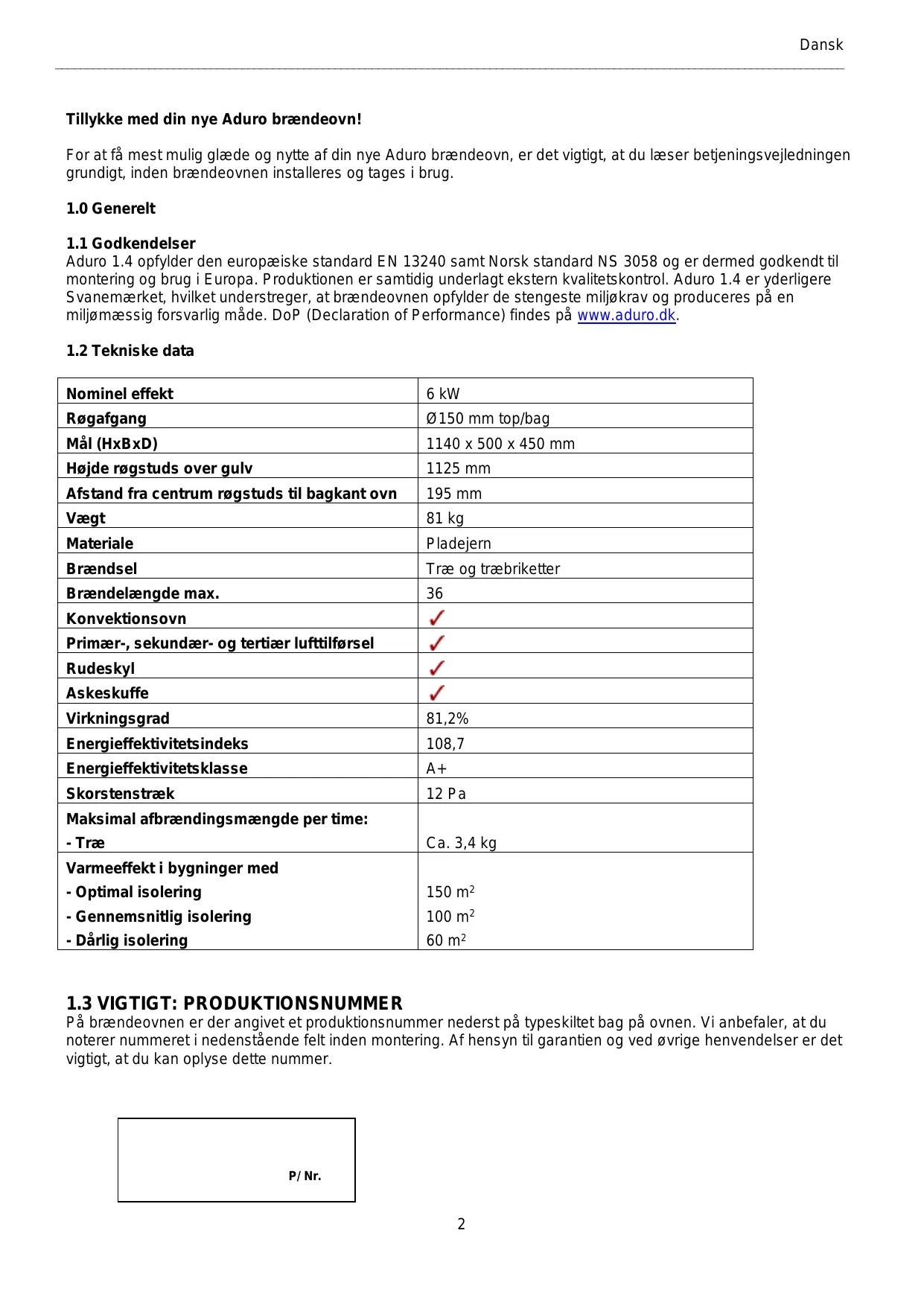 Téléchargez la notice de votre Brændeovn au format PDF gratuitement ! Retrouvez votre notice 1.4 - ADURO et reprennez votre appareil électronique en main. Sur cette page sont publiés tous les documents nécessaires à l'utilisation de votre appareil 1.4 de la marque ADURO.