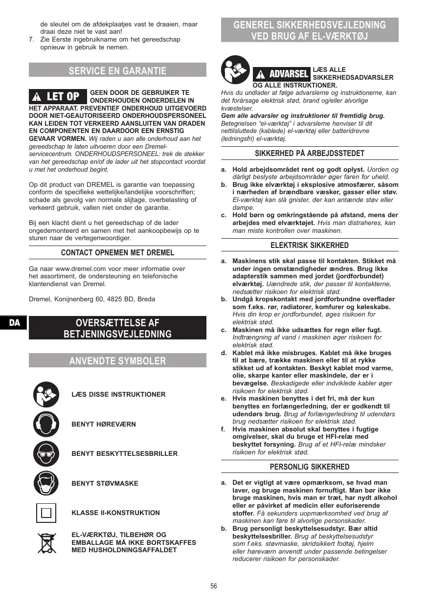 Téléchargez la notice de votre Roterende værktøj au format PDF gratuitement ! Retrouvez votre notice 200 - 3000 - 4000 - 4200 - DREMEL et reprennez votre appareil électronique en main. Sur cette page sont publiés tous les documents nécessaires à l'utilisation de votre appareil 200 - 3000 - 4000 - 4200 de la marque DREMEL.