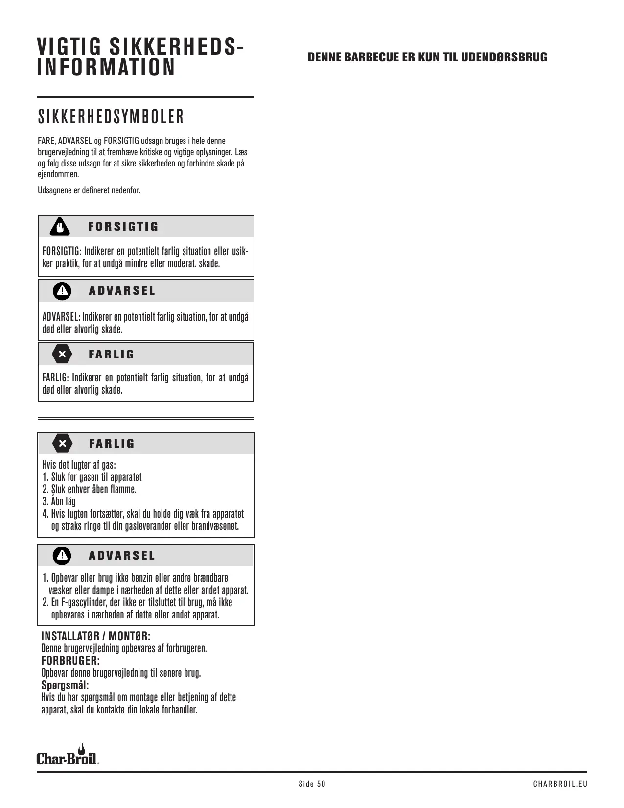 BRUGSANVISNING CONVECTIVE 310 B - 19609080 & 19609080A1 19609170 & 19609170A1 CHAR-BROIL