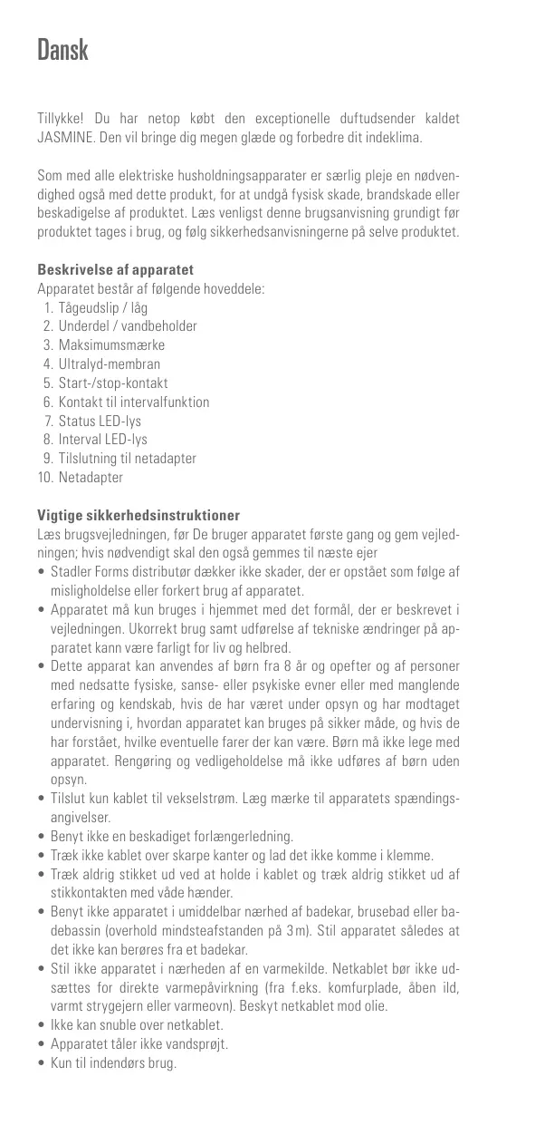Tillykke! Du har netop kbeit den exceptionelle duftudsender kaldet JASMINE. Den vil brige dig megen glaede og forbedre dit indeklima.