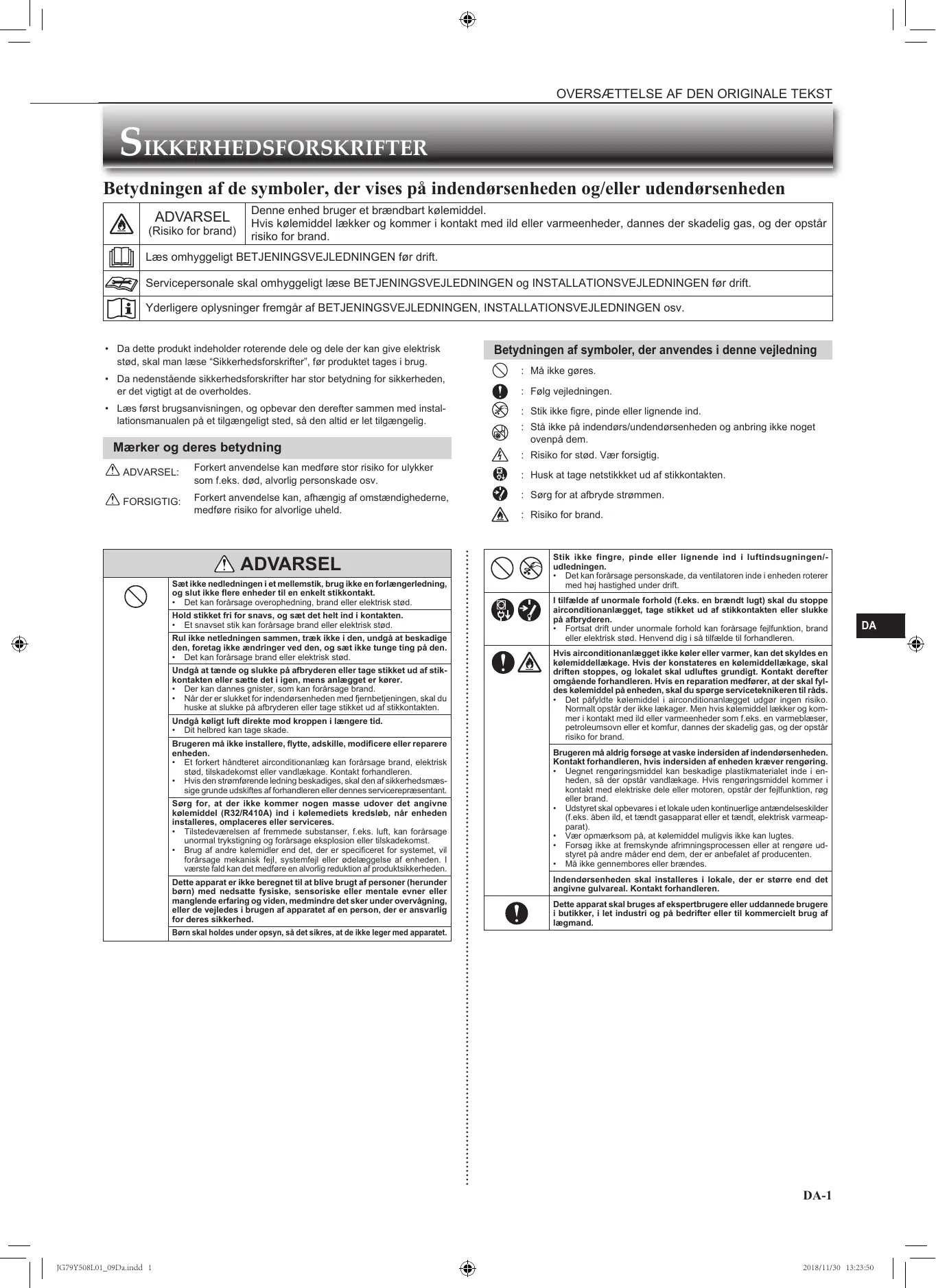 BRUGSANVISNING MSZ-EF18VGW MSZ-EF22VGW MSZ-EF25VGW MSZ-EF35VGW MSZ-EF42VGW MSZ-EF50VGW MSZ-EF18VGB MSZ-EF22VGB MSZ-EF25VGB MSZ-EF35VGB MSZ-EF42VGB MSZ-EF50VGB MSZ-EF18VGS MSZ-EF22VGS MSZ-EF25VGS MSZ-EF35VGS MSZ-EF42VGS MSZ-EF50VGS MITSUBISHI ELECTRIC