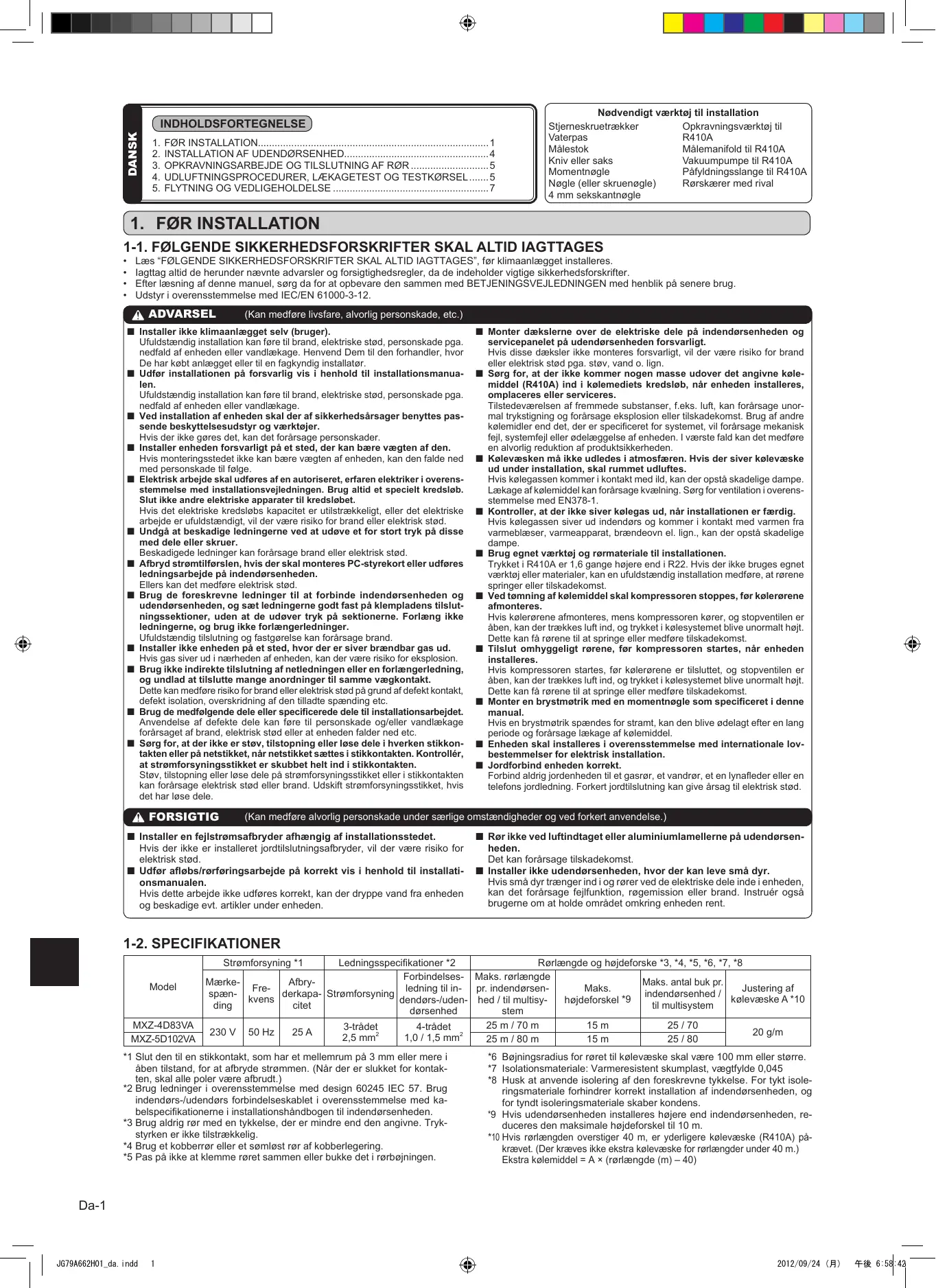 BRUGSANVISNING MXZ-4D83VA MXZ-5D102VA MITSUBISHI ELECTRIC