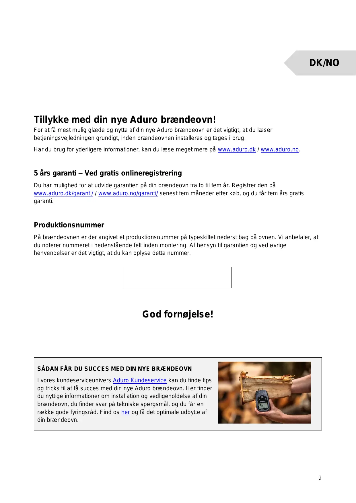 Fôr att fà ut den mesta glädjen och nyttan av din nya braskamin frân Aduro är det viktigt att du läser bruksanvisningen noggrant, innan braskaminen installeras och tas i bruk. Pour plus d'informations, rendez-vous sur www.aduro.fr.