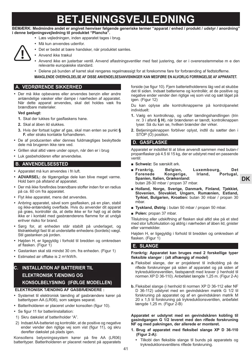 Det anbefales, at man bærer beskyttelseshandsker, nâr man rarer med specielt varme dele. Anvend langskaftede redskaber til at fytte mad pà risten.