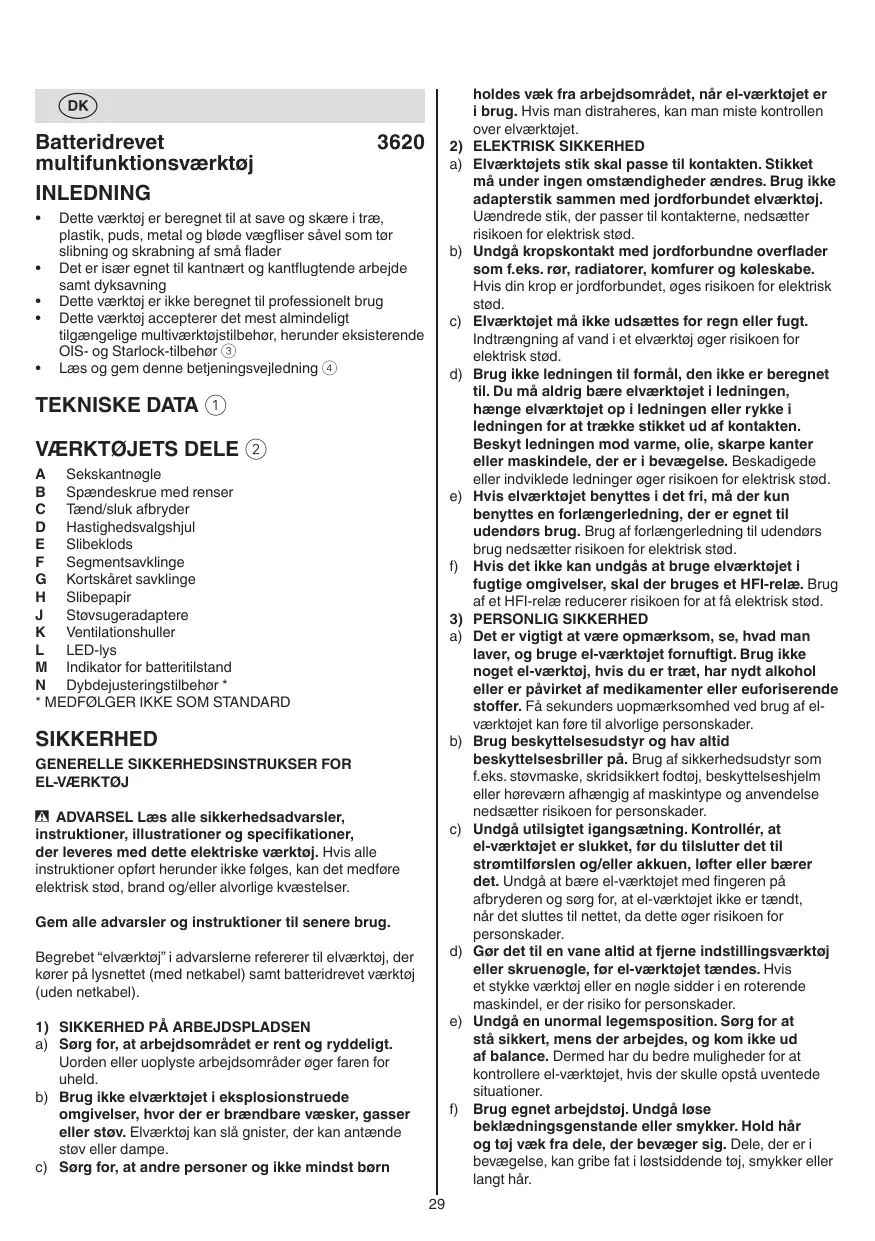BRUGSANVISNING MF1E3620AA - 3620 (MF1*3620**) SKIL