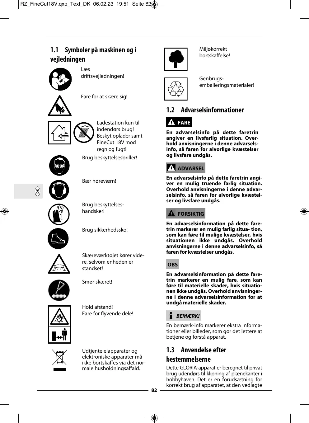 BRUGSANVISNING FINECUT GLORIA