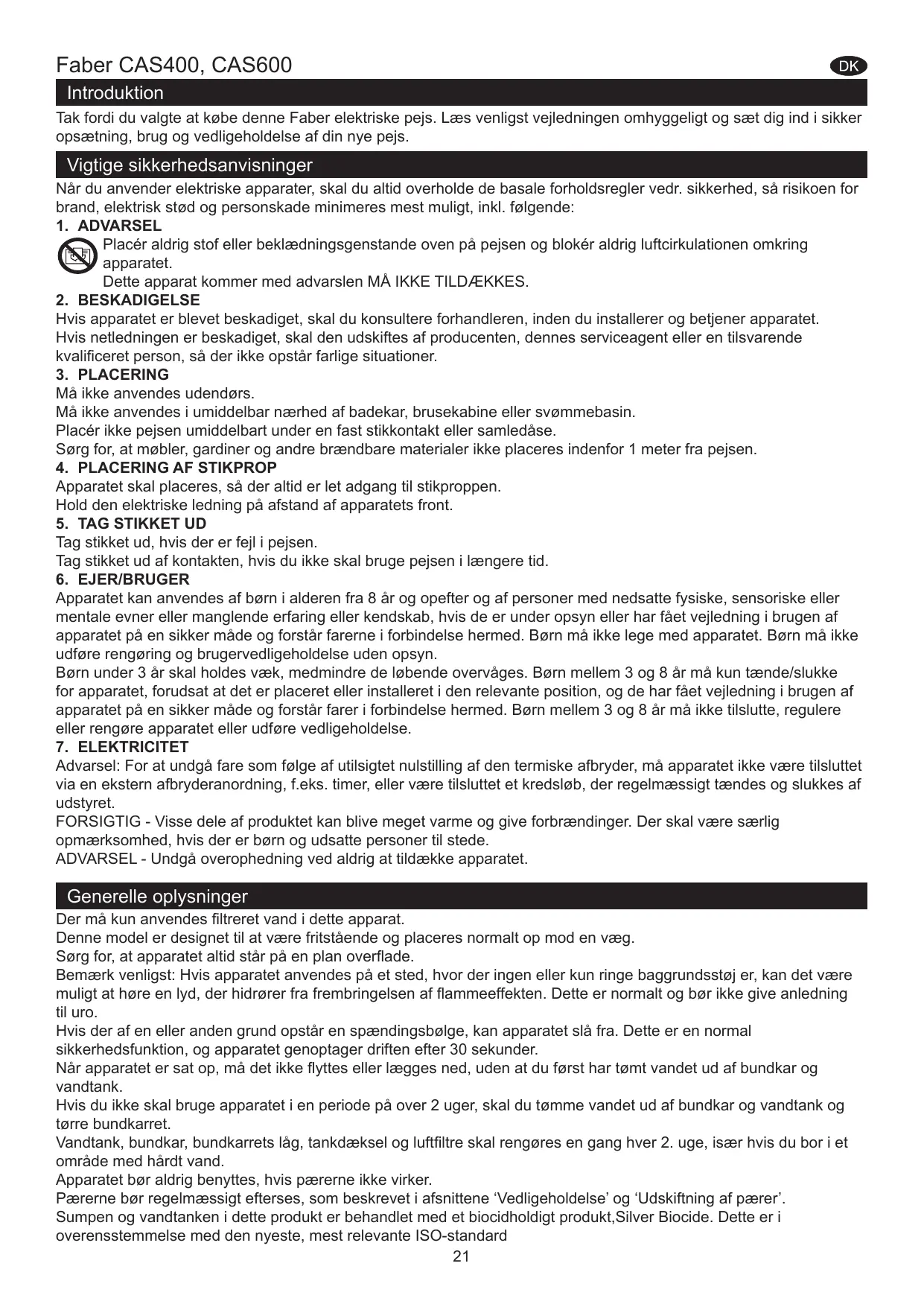 BRUGSANVISNING CAS400 - CAS600 FABER