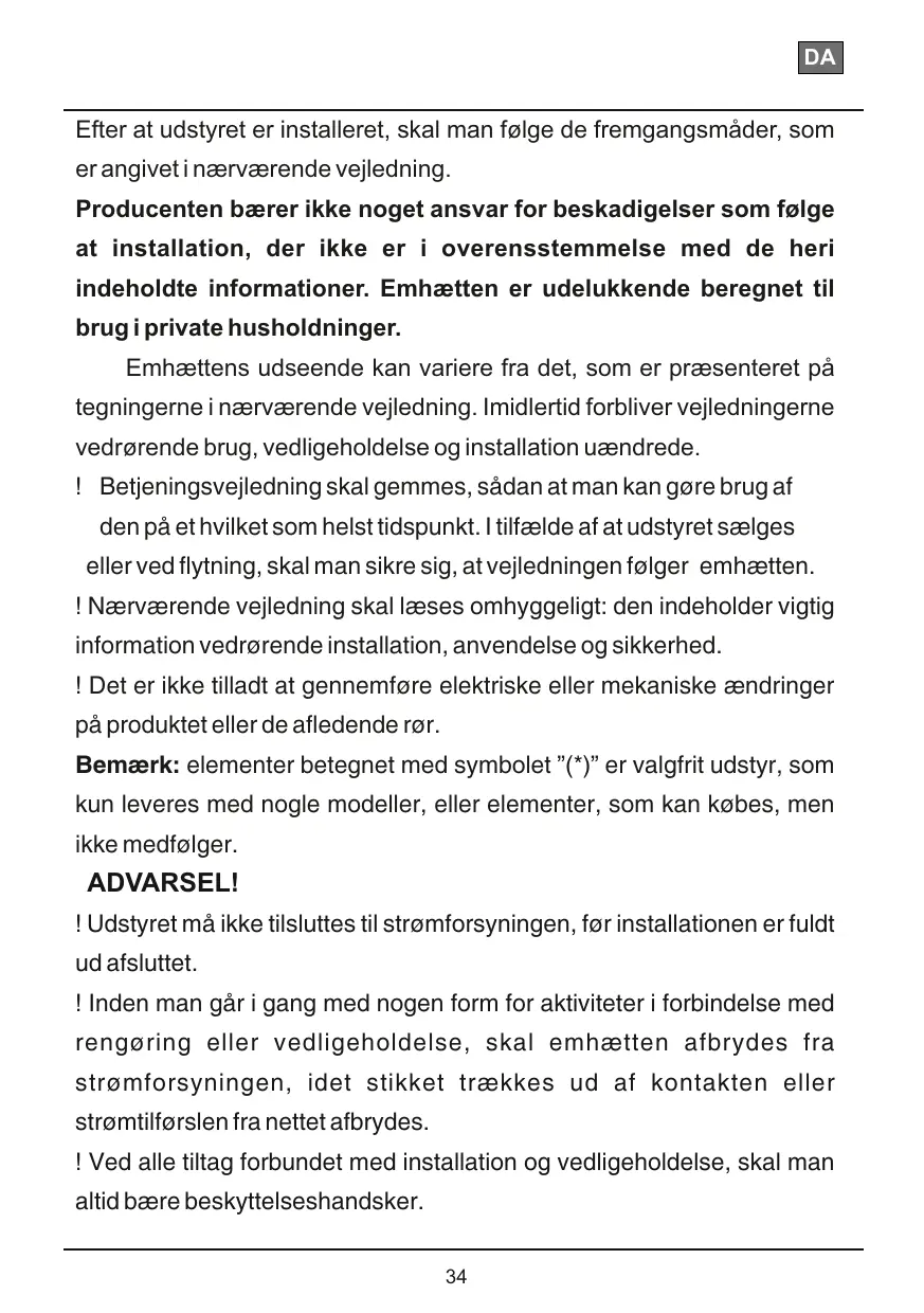 ILEST INTERDIT D'UTILISER DE L'ALCOOL! ATTENTION !: Le non-respect des consignes de base de nettoyage de la hotte et de remplacement des filtres peut entrainer des risques d'incendie. Il est donc recommandé de respecter le présent mode d'emploi. Le fabricant n'est aucunement responsable des dommages du moteur ou des dommages liés au feu qui résultent de la maintenance