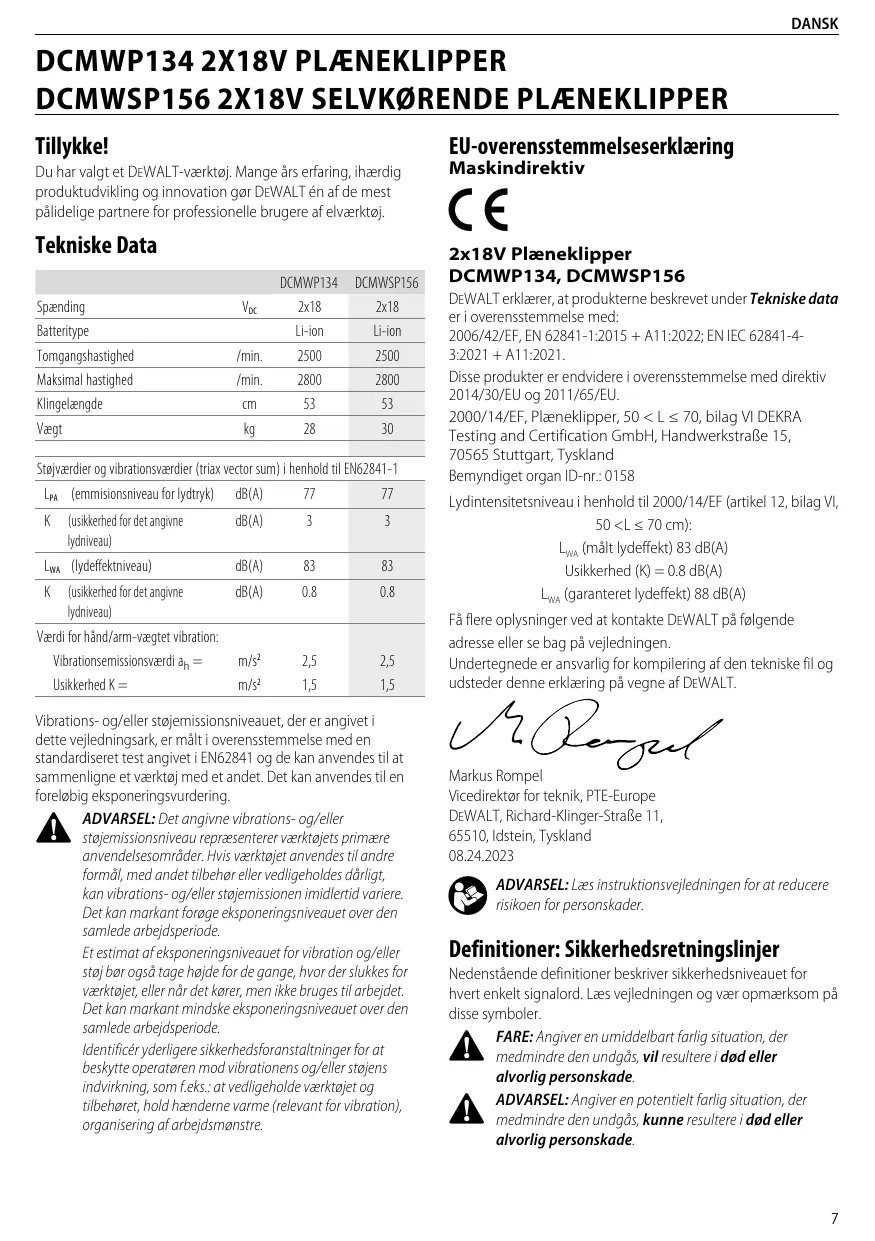 BRUGSANVISNING DCMWP134 - DCMWSP156 DEWALT