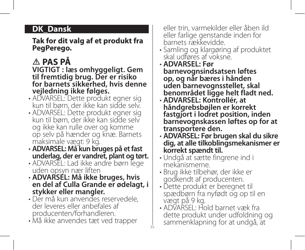 Téléchargez la notice de votre Barnevogne og tilbehør au format PDF gratuitement ! Retrouvez votre notice Culla Grande - PEG PEREGO et reprennez votre appareil électronique en main. Sur cette page sont publiés tous les documents nécessaires à l'utilisation de votre appareil Culla Grande de la marque PEG PEREGO.