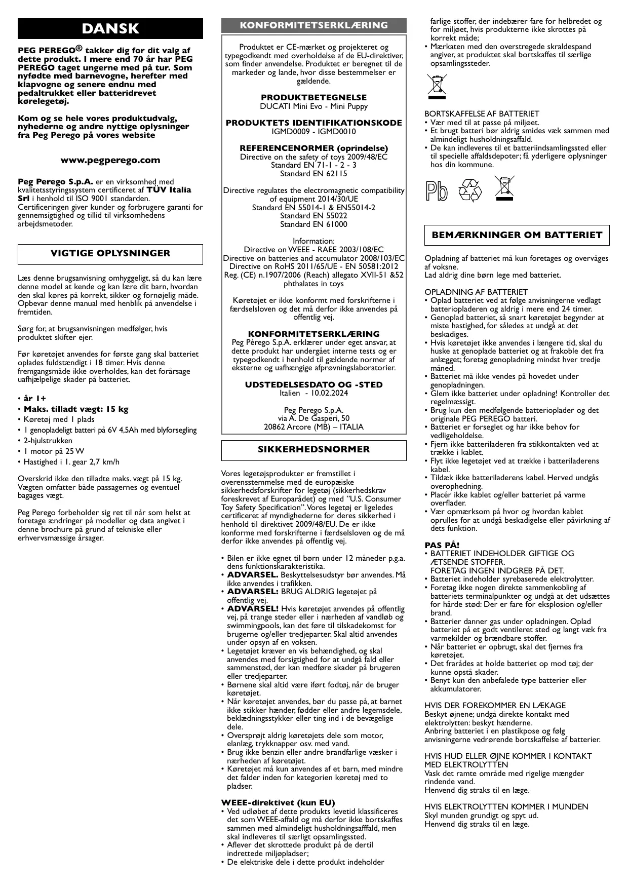 Téléchargez la notice de votre MOTO POUR ENFANT au format PDF gratuitement ! Retrouvez votre notice Mini Puppy - PEG PEREGO et reprennez votre appareil électronique en main. Sur cette page sont publiés tous les documents nécessaires à l'utilisation de votre appareil Mini Puppy de la marque PEG PEREGO.