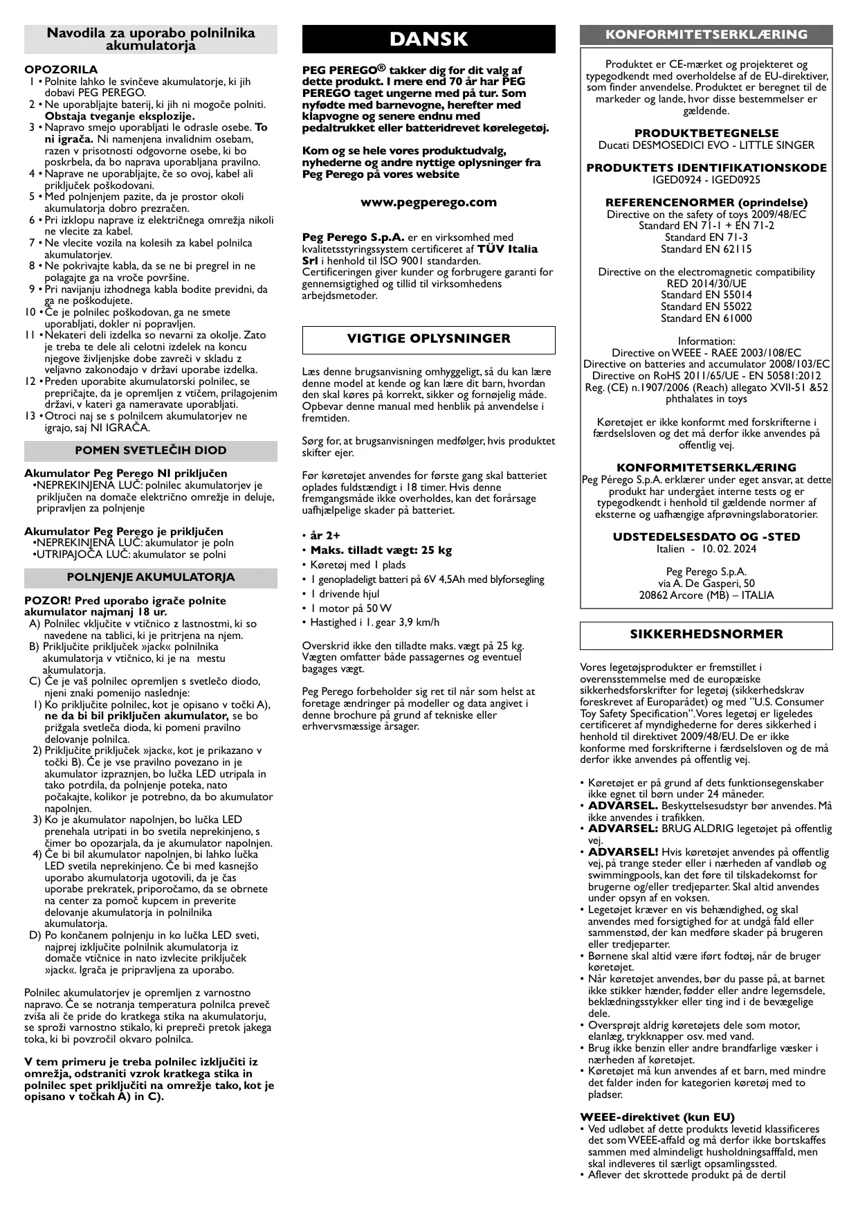BRUGSANVISNING Ducati Mini Evo PEG PEREGO