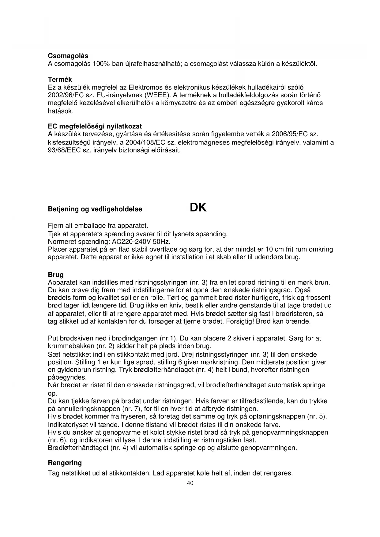 af apparatet, eller til at rengøre apparatet med. Hvis brødet sætter sig fast i brødristeren, så
