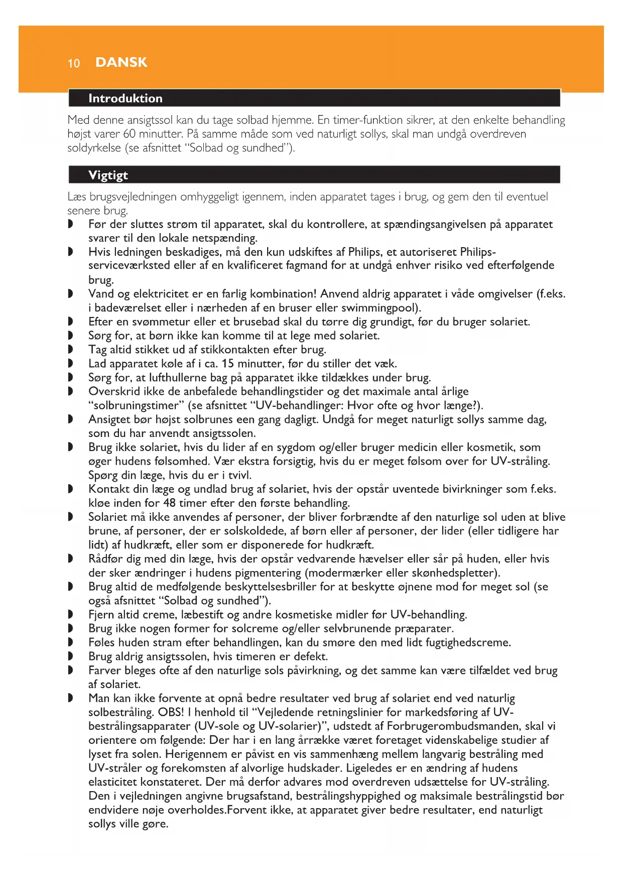 at du følger anvisningerne i afsnittene “Vigtigt” og “UV-behandlinger: Hvor ofte og hvor længe?”;