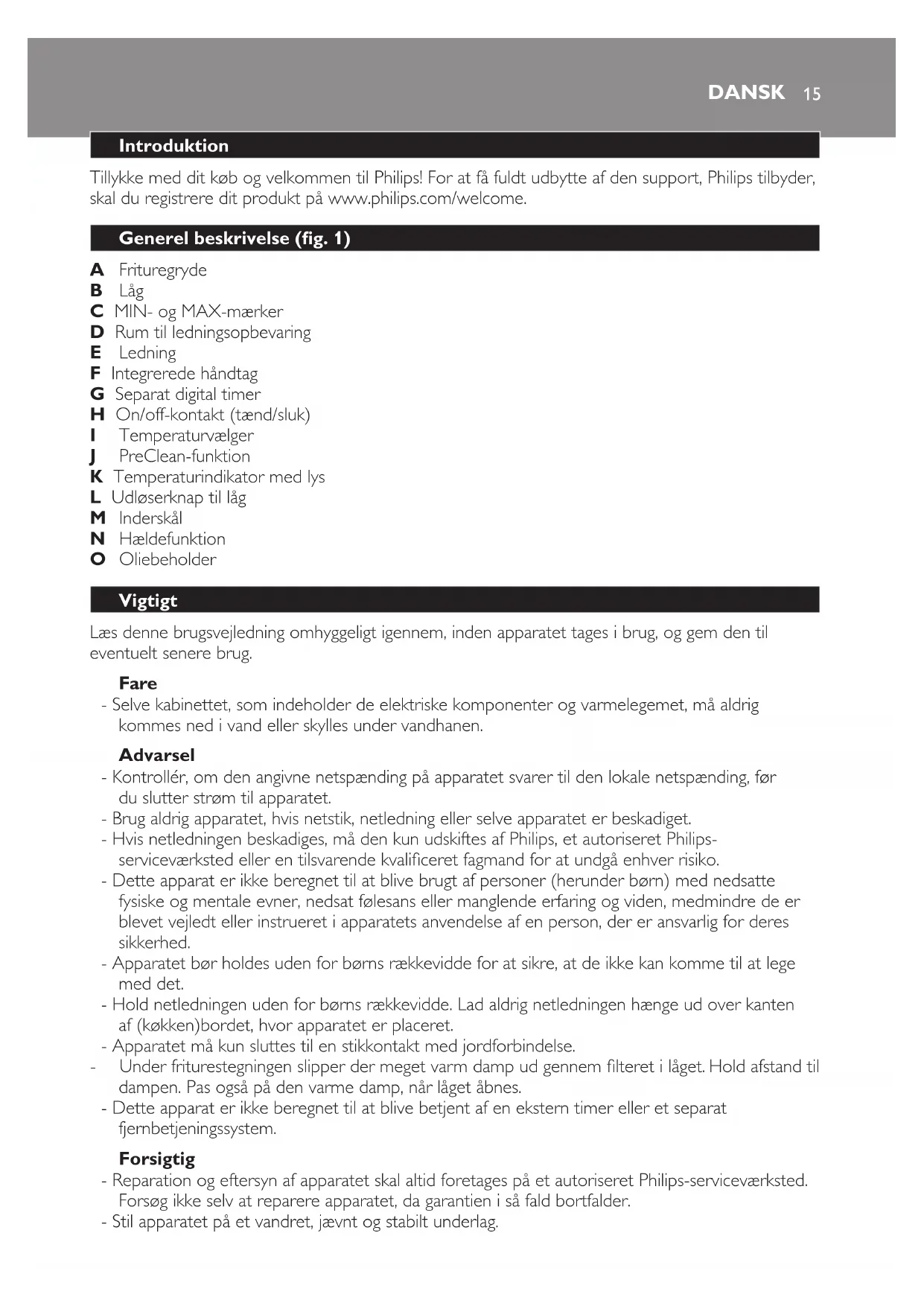 med brugsvejledningen, bortfalder garantien og dermed Philips’ ansvar for eventuelle skader.