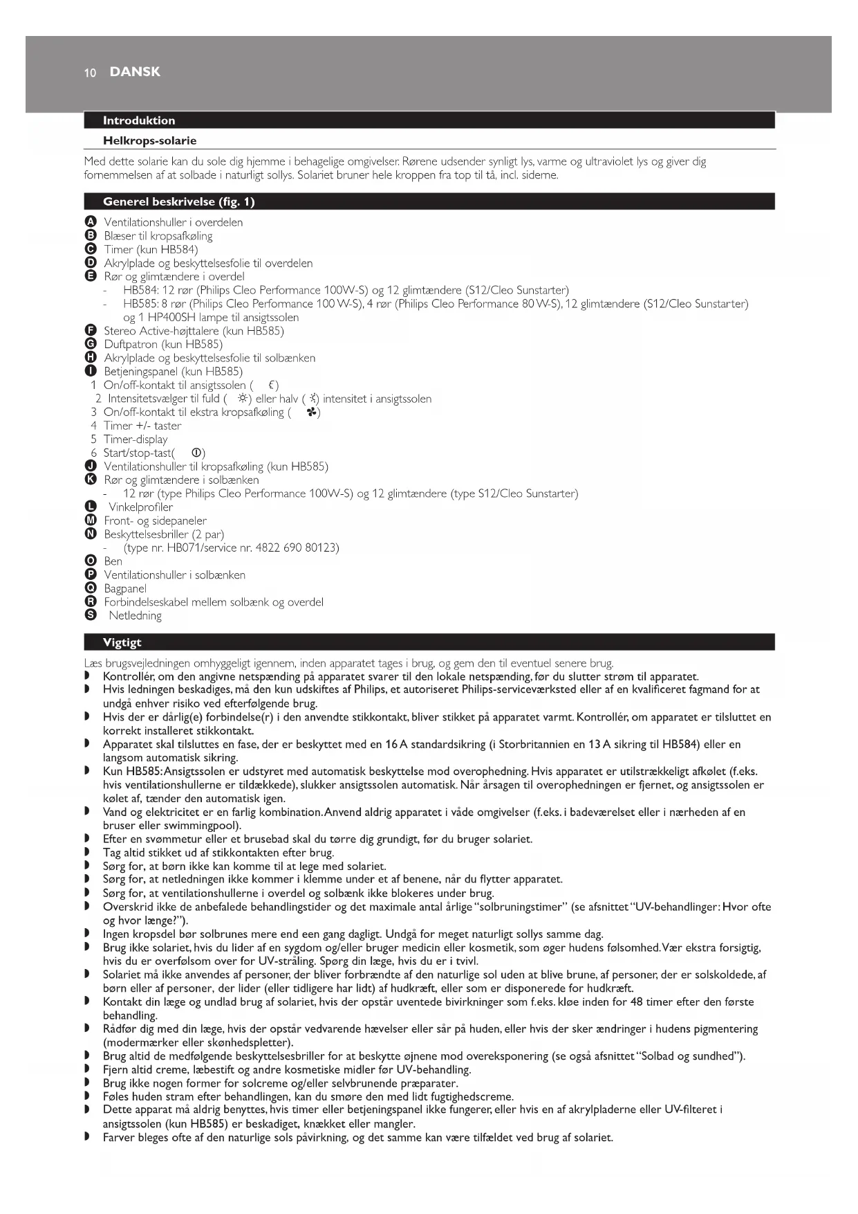 Kun HB585: Ansigtssolen er udstyret med automatisk beskyttelse mod overophedning. Hvis apparatet er utilstrækkeligt afkølet (f.eks.