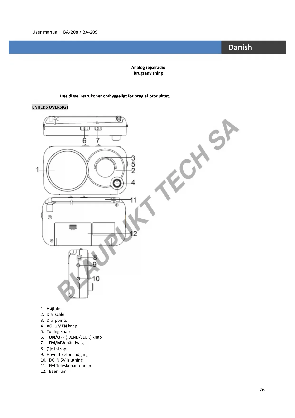 - Mærkepladen er placeret bag på apparatet. BLAUPUKT TECH SAUser manual BA-208 / BA-209