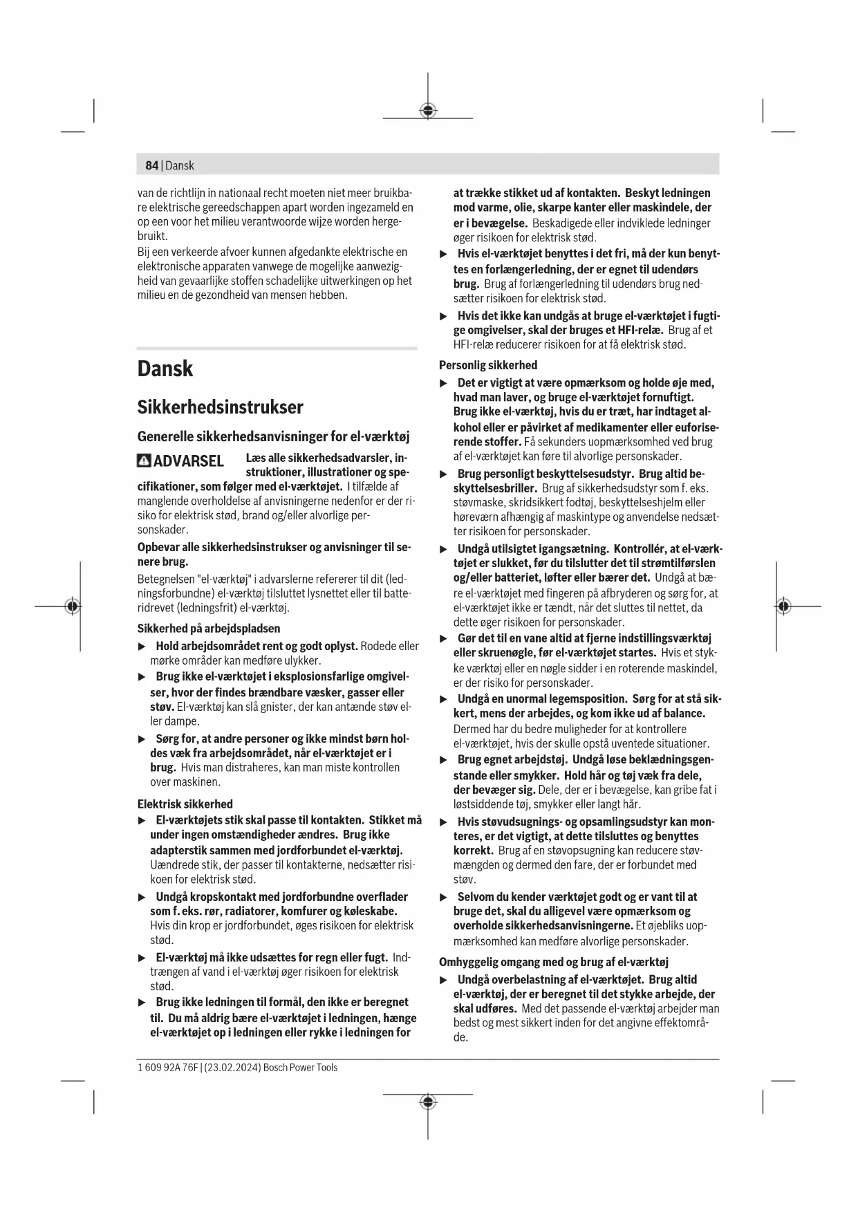 de. 1 609 92A 76F | (23.02.2024) Bosch Power ToolsDansk | 85