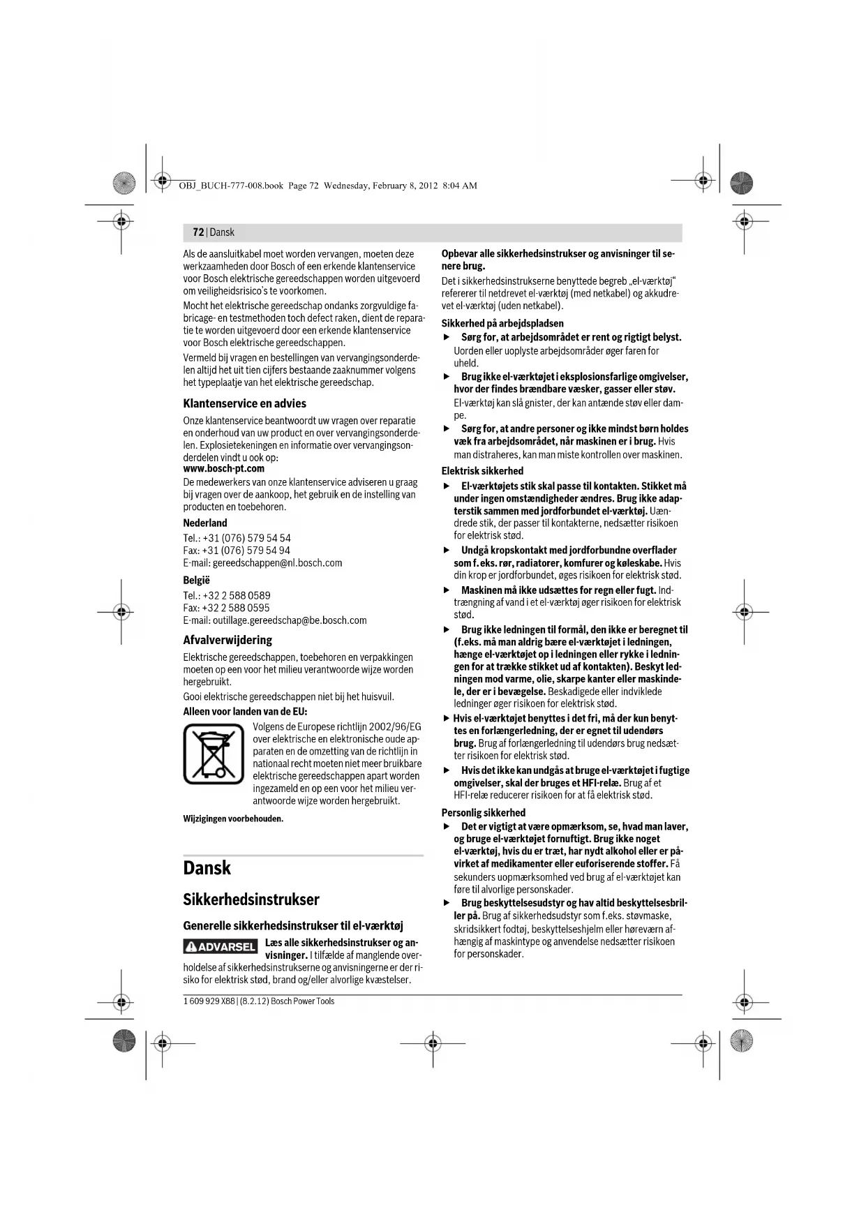 ADVARSEL OBJ_BUCH-777-008.book Page 72 Wednesday, February 8, 2012 8:04 AMDansk | 73