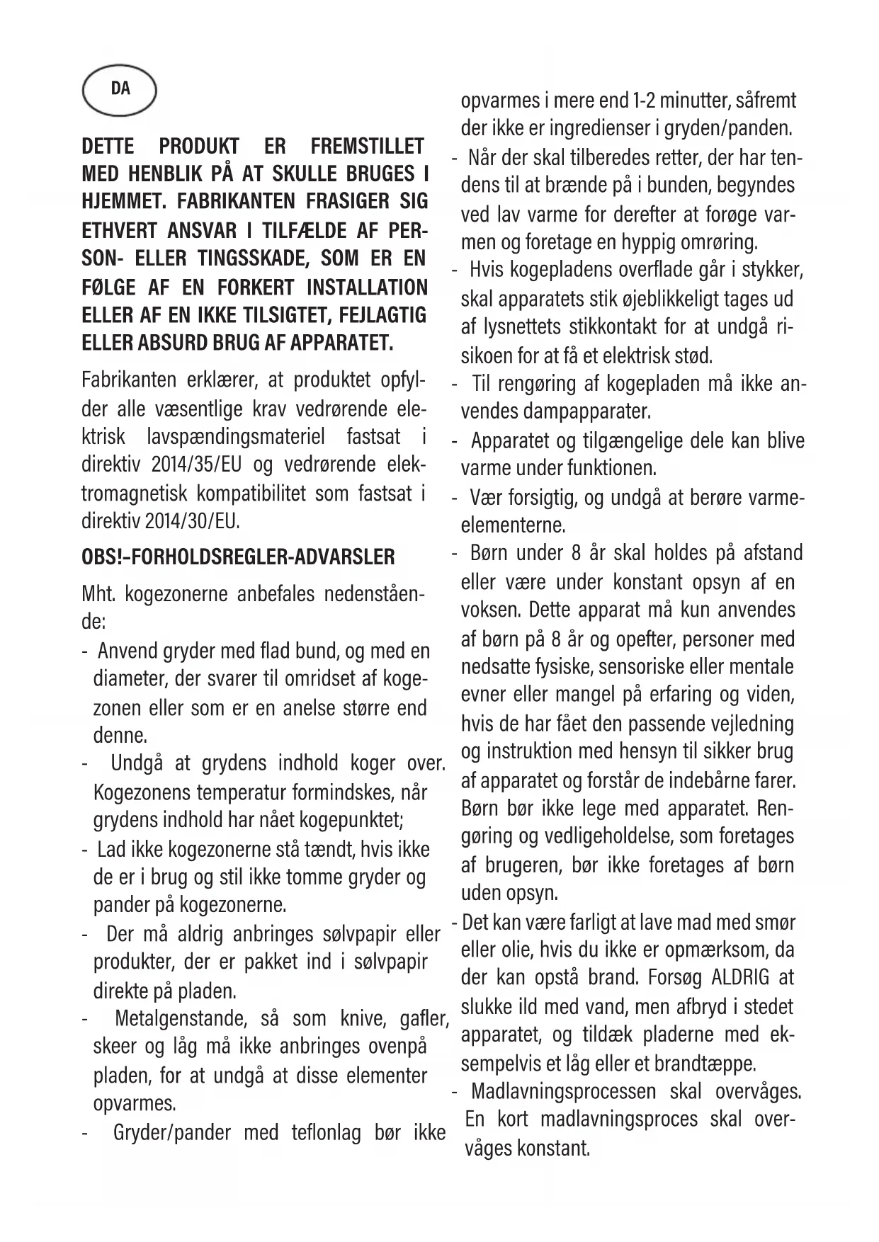 - Lad ikke kogezonerne stå tændt, hvis ikke