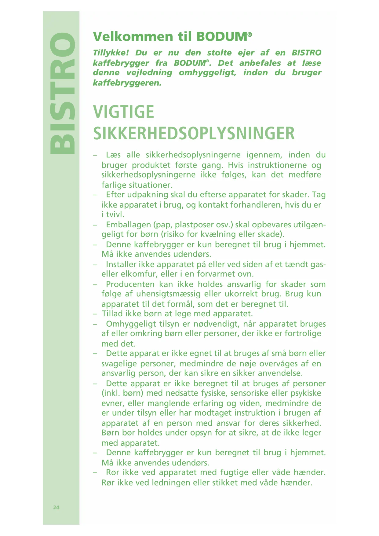 Tillykke! Du er nu den stolte ejer af en BISTRO kaffebrygger fra BODUM