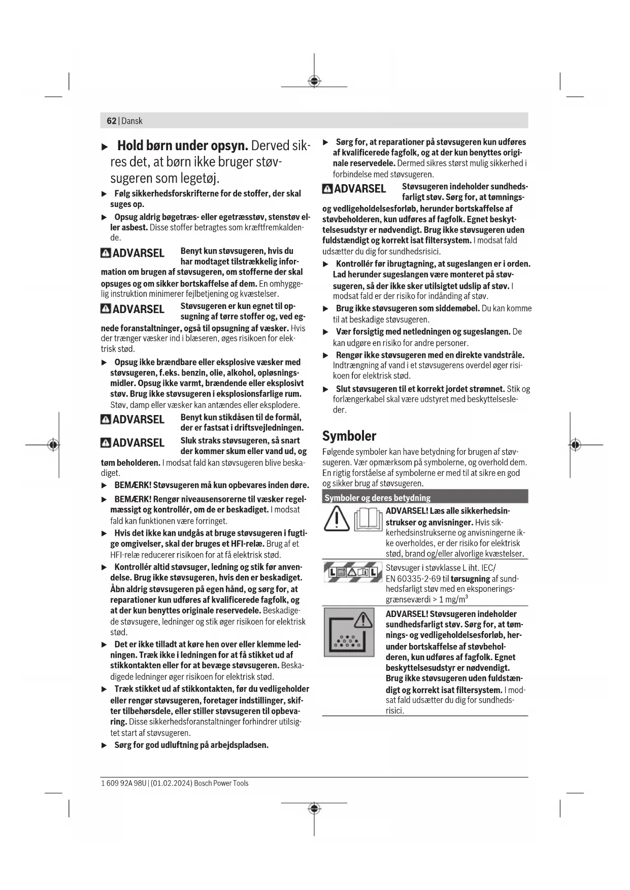 tjening og personskader. Bosch Power Tools 1 609 92A 98U | (01.02.2024)62 | Dansk