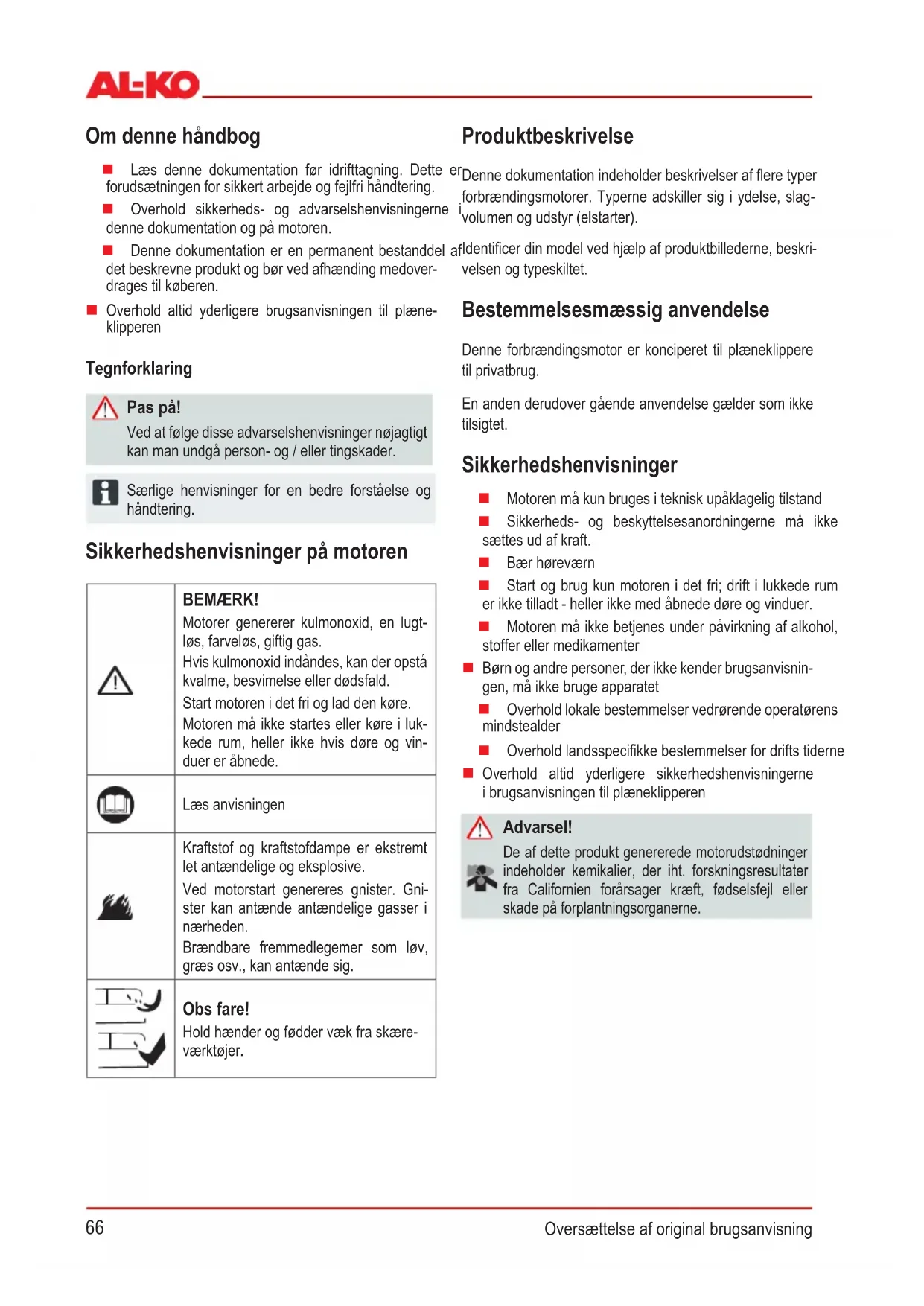 BRUGSANVISNING Classic 4.6 BA AL-KO