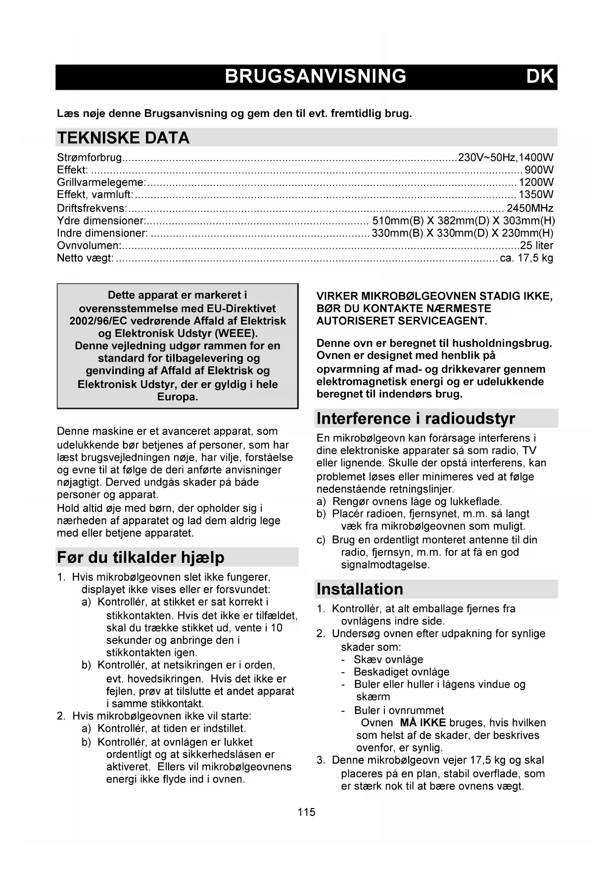 3. Denne mikrobølgeovn vejer 17,5 kg og skal