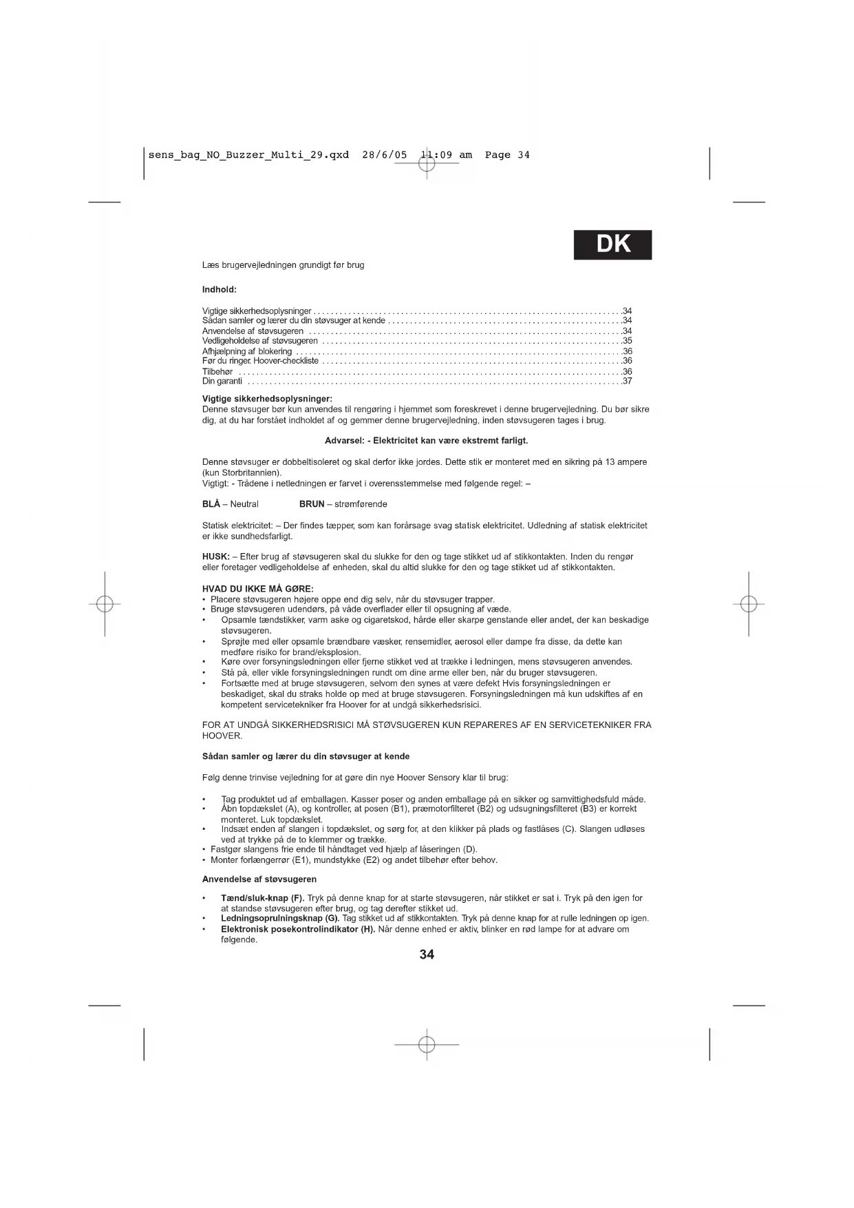 sens_bag_NO_Buzzer_Multi_29.qxd 28/6/05 11:09 am Page 33DK Læs brugervejledningen grundigt før brug